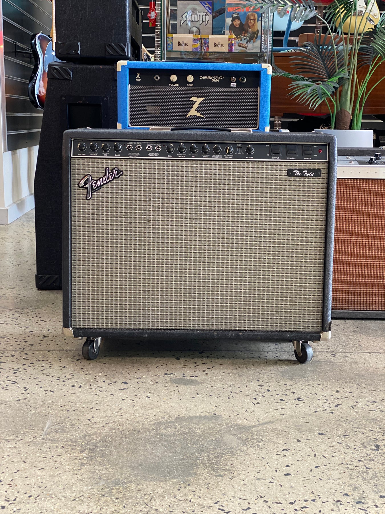 • Controls: Independent Volume, Treble, Middle, Bass on each channel, Presence, Reverb, Effects Mix.