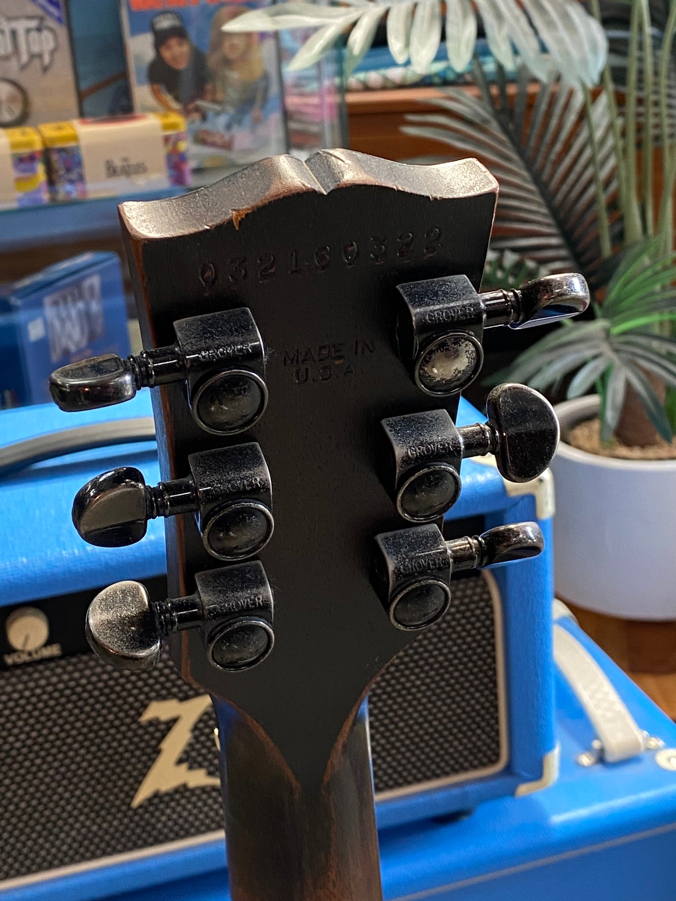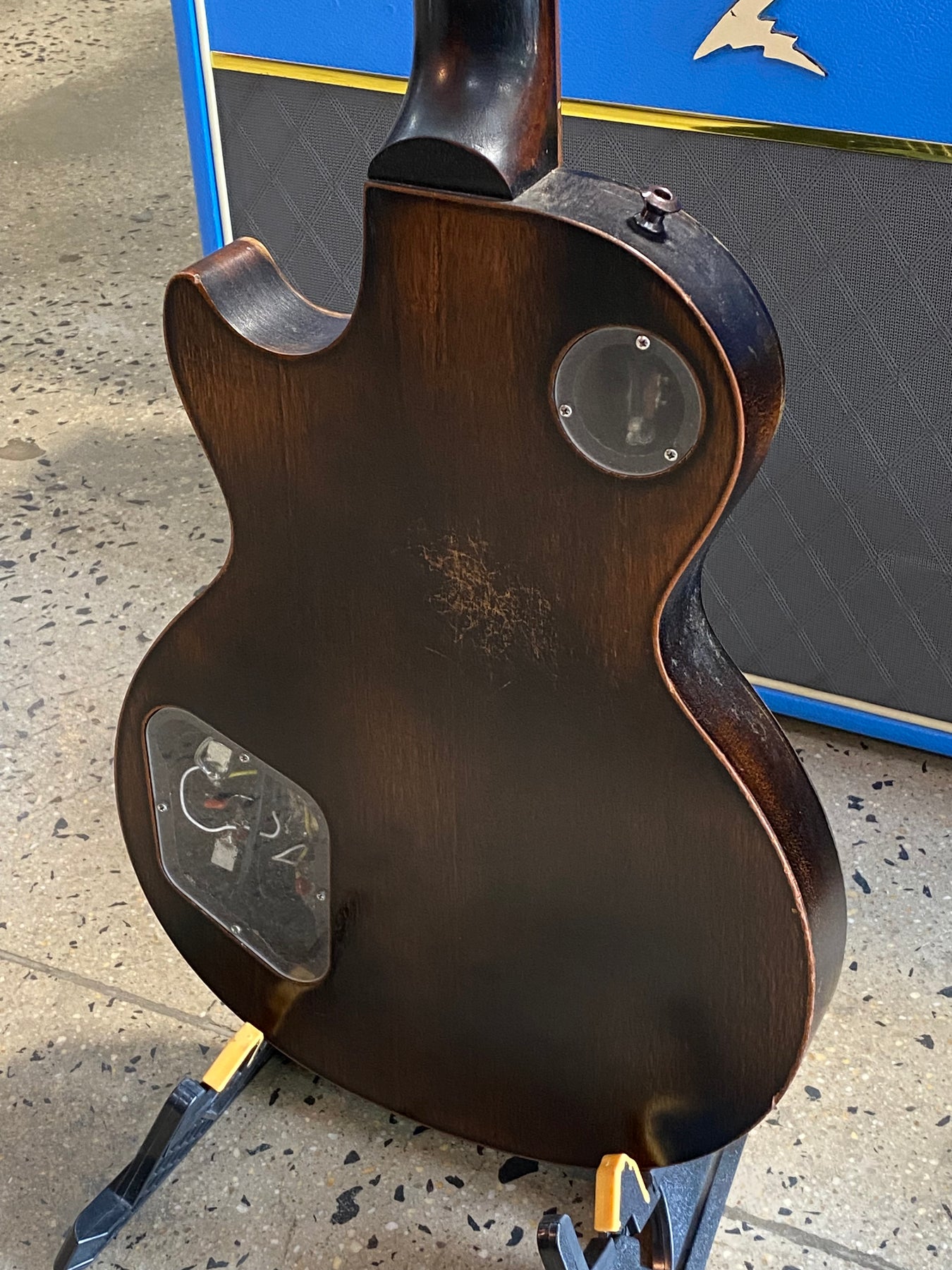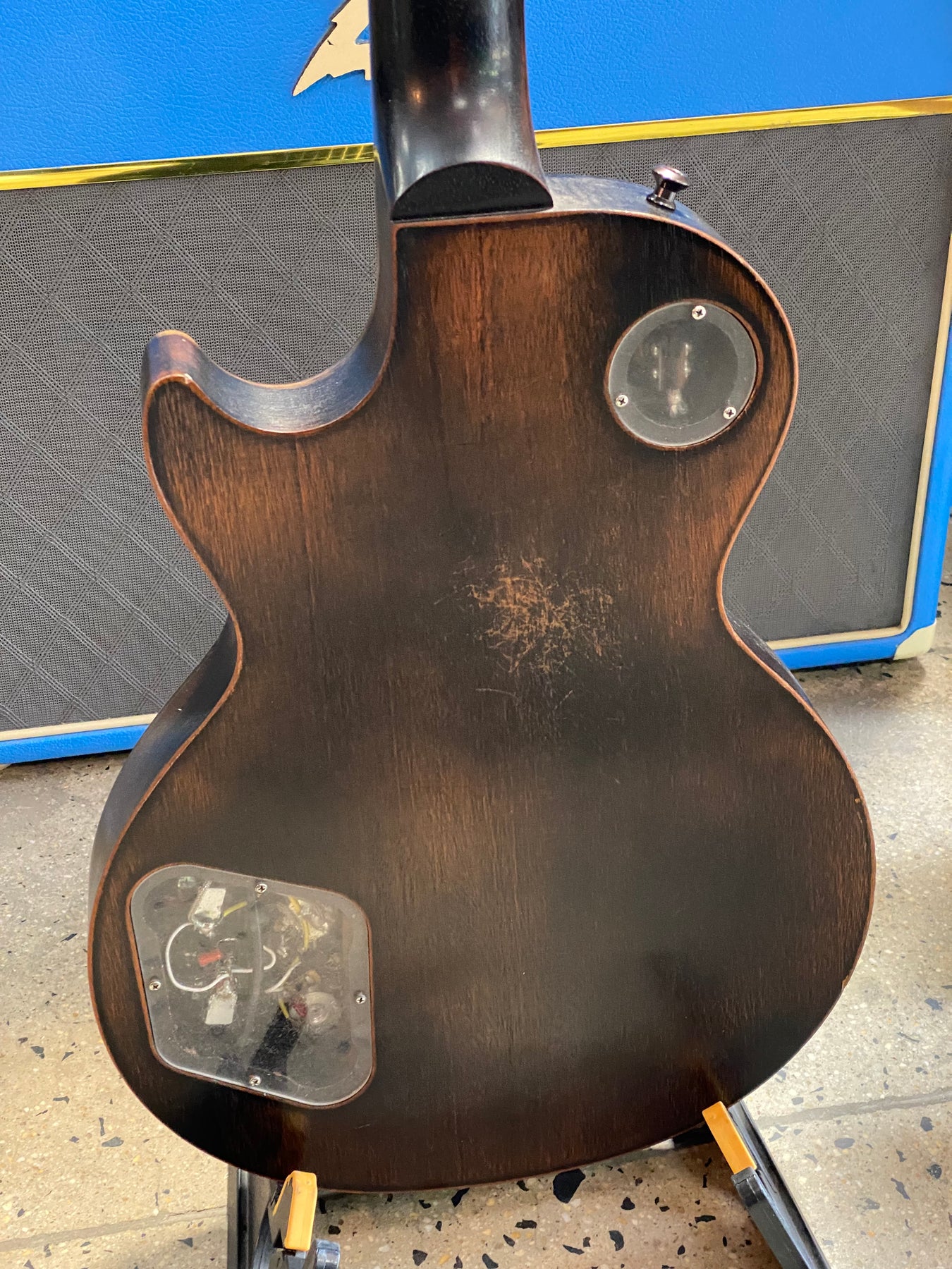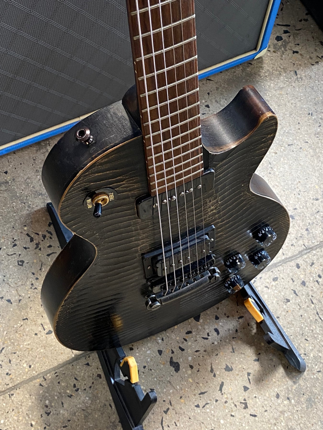Has had a few mods, Speed knobs, non original truss rod cover and a P-rail in the bridge. Coil tap control on Bridge Vol and Tone