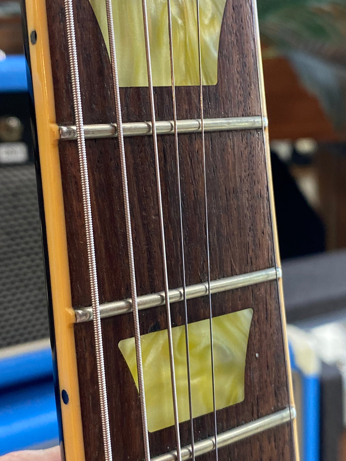 Notorious "snot green" fingerboard inlays